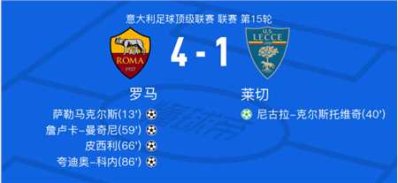北京时间12月8日罗马vs莱切,帕雷德斯得到全场最高的8.3分,多古得到全场最低的5.5分