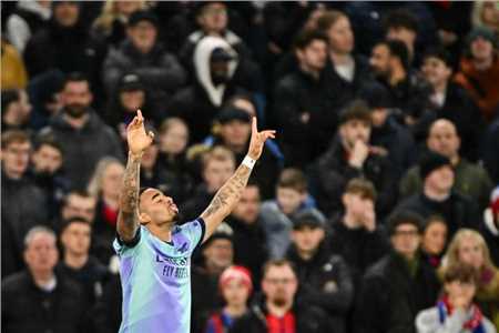 英超第17轮客场挑战水晶宫的比赛中,热苏斯的梅开二度帮助阿森纳取得2-1的领先。