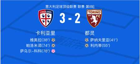 北京时间10月21日卡利亚里vs都灵,维奥拉得到全场最高的7.6分,萨乌尔-科科得到全场最低的5.9分